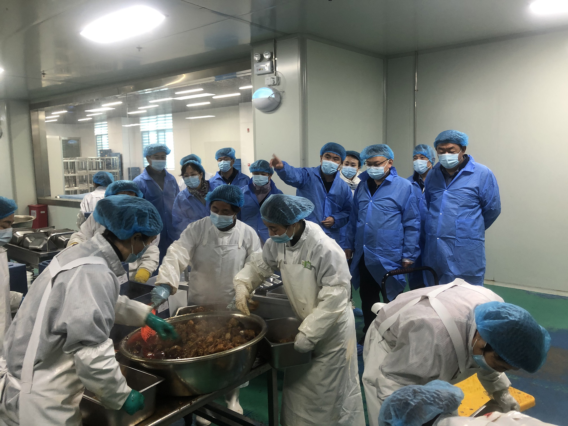 接着,调研组一行马不停蹄的来到庆安央厨,先后参观调研了切配间、热调理间、主食库、分餐间、化验室等处,听取了袁征关于中央厨房加工、包装、配送等流程的详细汇报。张同华指出,要始终把安全、营养、健康放在首位,严格控制原材料源头把控,确保食品安全,合理搭配营养餐,注重均衡营养。另外须注意食品安全台账的整理、归纳、留存,做到账账相符、账实相符。