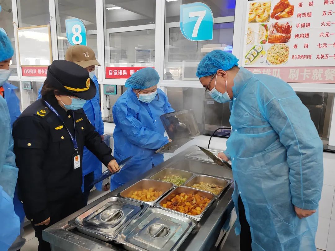 徐州市教育局、市场监督管理局领导一行对天勤餐饮公司撷秀中学项目进行检查指导