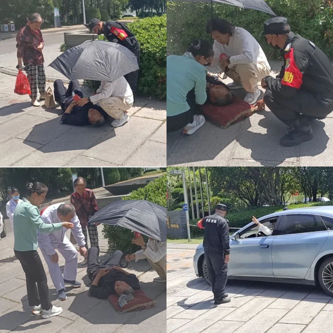 5月12日上午11时,南湖水街项目的一位游客游玩时突感不适晕倒在地,门岗值班人员袁红刚同志第一时间冲上去查看老人情况,询问情况后立即通知其他人员送来遮阳伞及抱枕供老人休息,通知老人家属赶赴现场的同时并联系了120急救中心,协助医护人员将老人送往医院治疗。