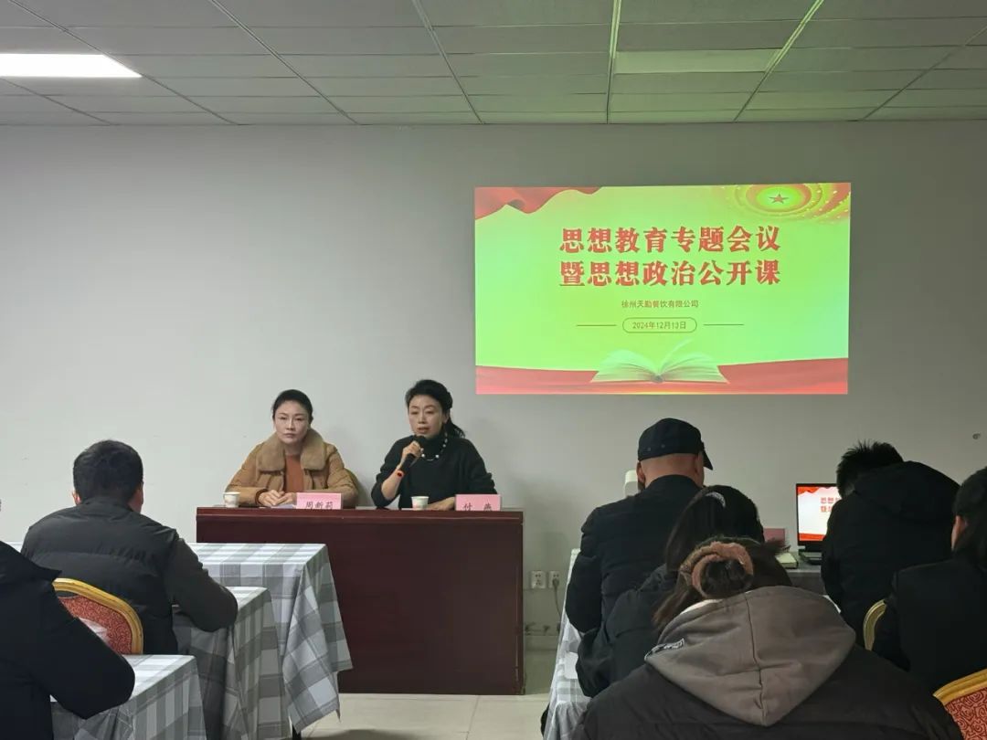 为持续加强员工思想政治建设,切实增强公司凝聚力和战斗力,12月13日,天勤餐饮公司组织召开第二次思想教育专题会议。天美公司总经理付燕出席会议并讲话,餐饮公司总经理周新莉做专题授课,副总经理吕金玲主持会议。